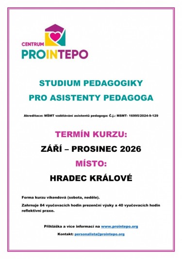 STUDIUM PEDAGOGIKY PRO ASISTENTY PEDAGOGA 9 - 12 / 2026